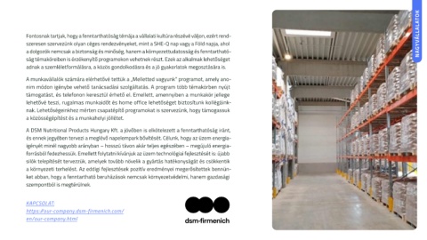 A DSM Nutritional Products Hungary Kft. a jövőben is elkötelezett a fenntarthatóság iránt,