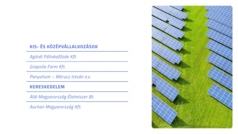 KIS- ÉS KÖZÉPVÁLLALKOZÁSOK Agárdi Pálinkafőzde Kft. Grapoila Farm Kft. Panyolium – Mórucz István e.v. KERESKEDELEM Aldi Magyarország Élelmiszer Bt. Auchan Magyarország Kft.